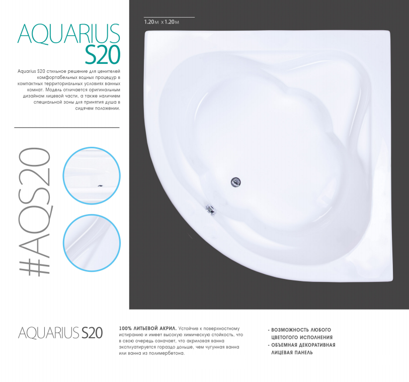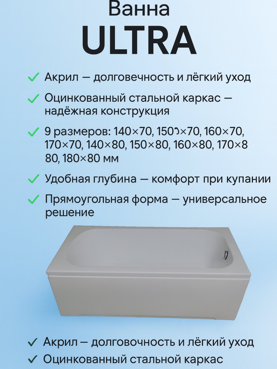 🔹 Глубокий поддон — высота 450 мм, глубина 350 мм, слив 50 мм